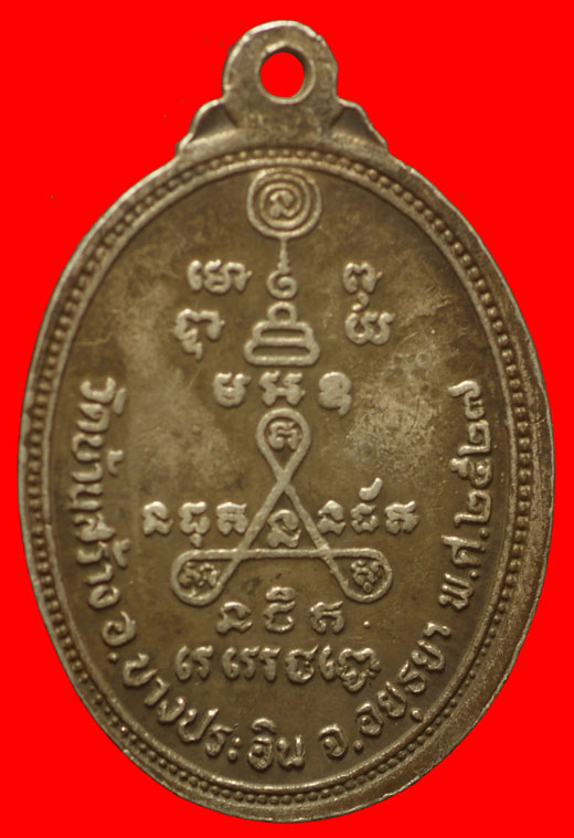 เหรียญพระครูวิโรจน์ วัดบ้านสร้าง อยุธยา เนื้อเงิน มีจารย์หลัง